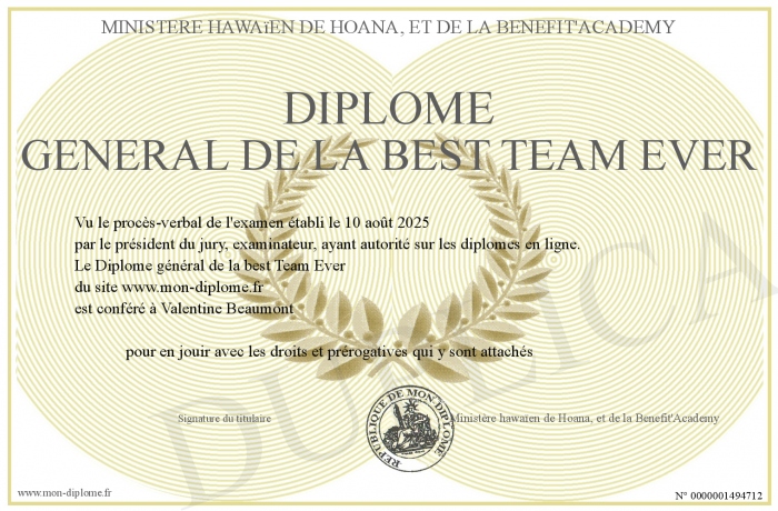 Envoyez par email votre Diplôme général de la best Team Ever personalisé