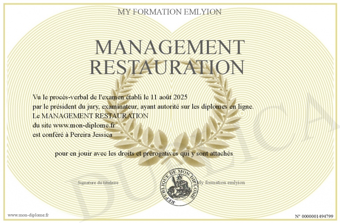 Envoyez par email votre MANAGEMENT RESTAURATION personalisé