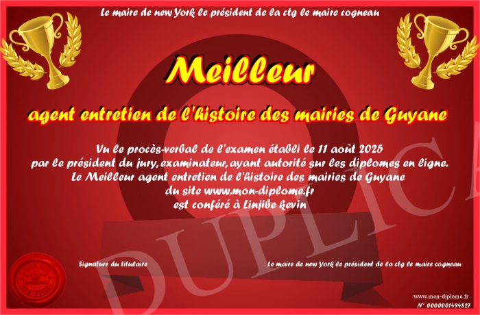 Envoyez par email votre Meilleur agent entretien de l'histoire des mairies de Guyane personalisé
