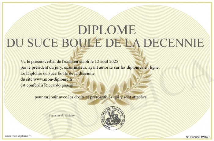 Envoyez par email votre Diplôme du suce boule de la décennie personalisé