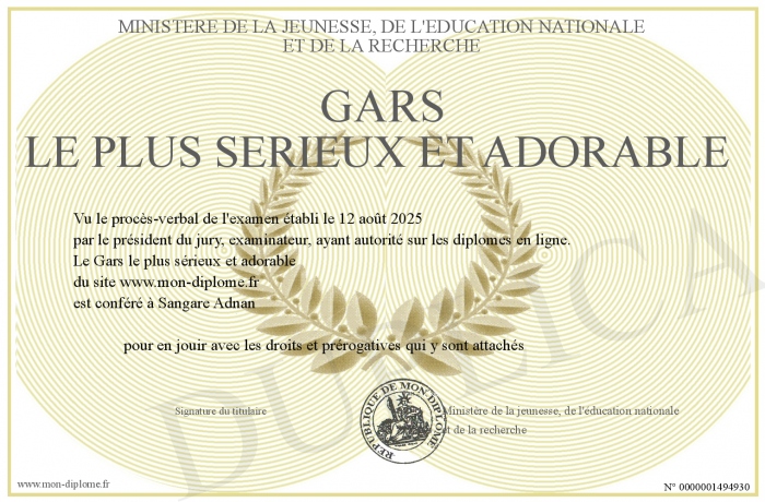 Envoyez par email votre Gars le plus sérieux et adorable personalisé