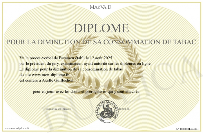 Envoyez par email votre diplôme pour la diminution de sa consommation de tabac personalisé