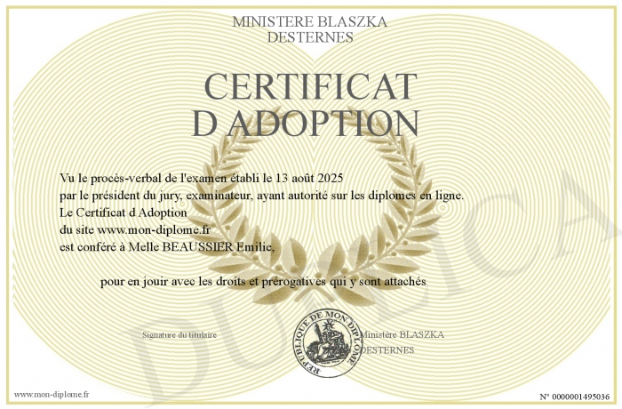 Envoyez par email votre Certificat d Adoption personalisé