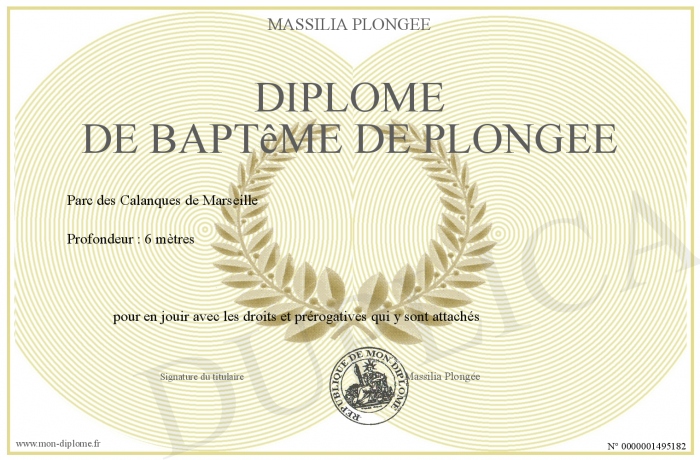 Envoyez par email votre Diplôme de Baptême de Plongée personalisé