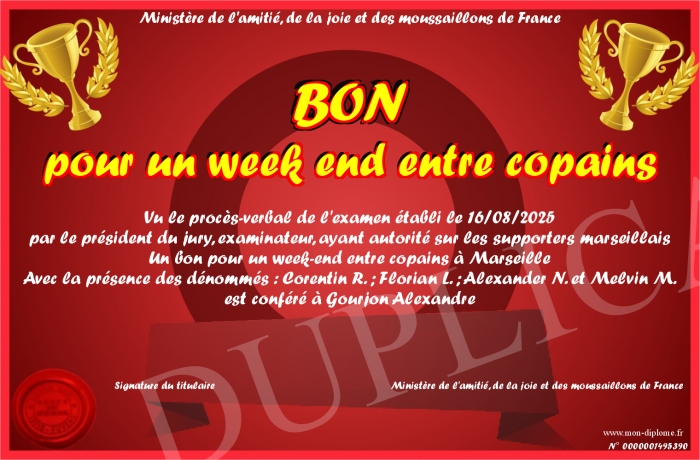 Envoyez par email votre BON pour un week end entre copains personalisé
