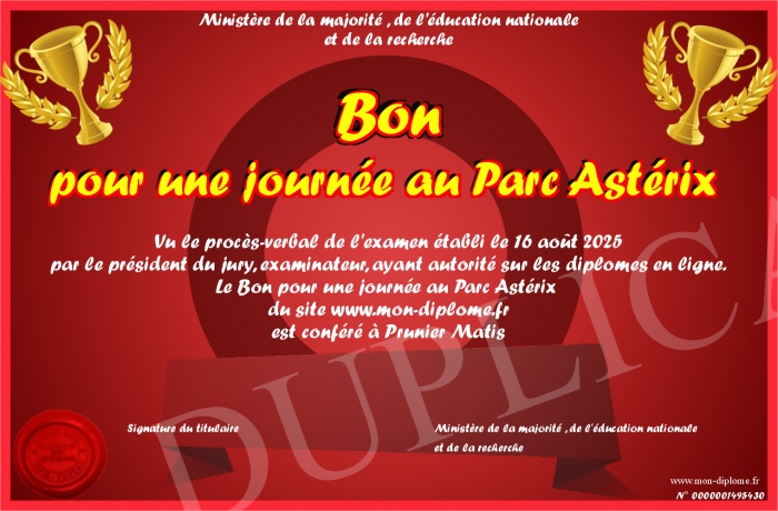 Envoyez par email votre Bon pour une journée au Parc Astérix personalisé