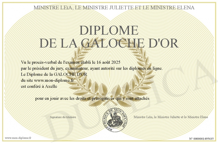 Envoyez par email votre Diplôme de la GALOCHE D'OR personalisé