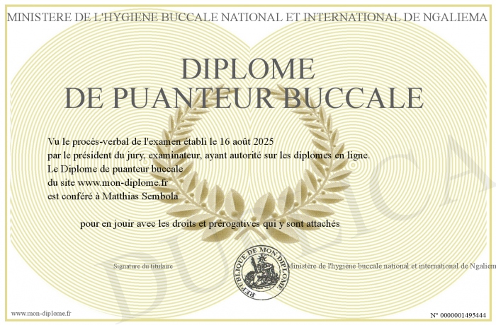 Envoyez par email votre Diplôme de puanteur buccale personalisé