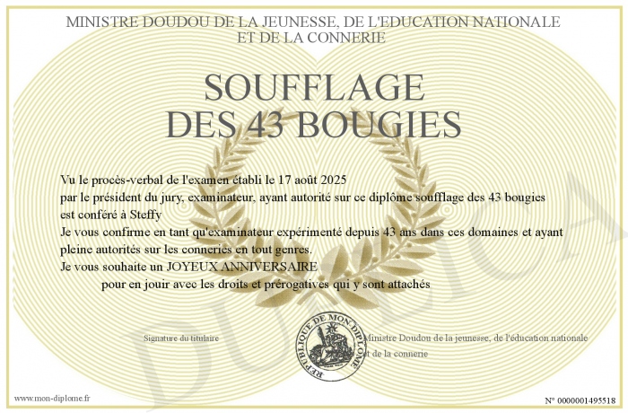 Envoyez par email votre soufflage des 43 bougies personalisé