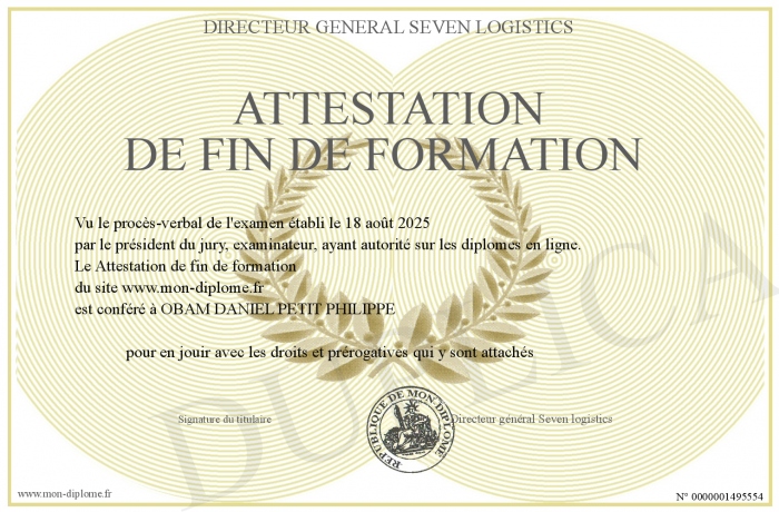 Envoyez par email votre Attestation de fin de formation personalisé