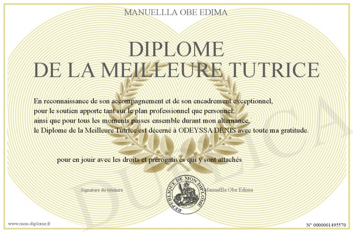 Envoyez par email votre Diplôme de la meilleure tutrice personalisé