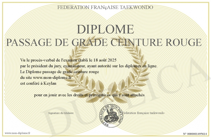Envoyez par email votre Diplome passage de grade ceinture rouge personalisé