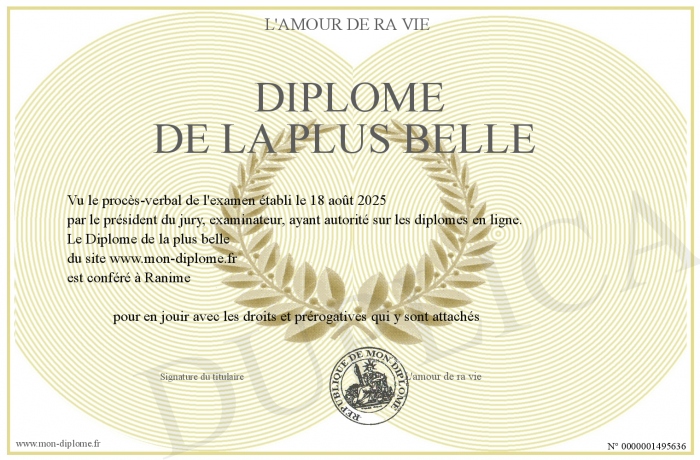 Envoyez par email votre Diplôme de la plus belle personalisé