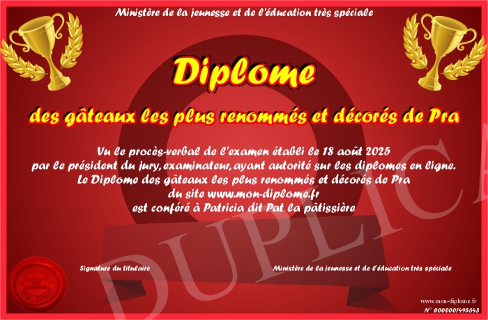 Envoyez par email votre Diplôme des gâteaux les plus renommés et décorés de Pra personalisé