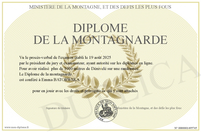 Envoyez par email votre Diplôme de la montagnarde personalisé