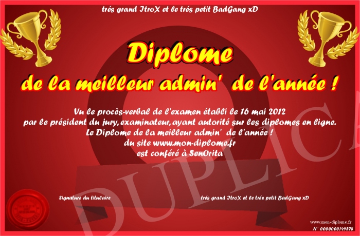 Envoyez par email votre Diplôme de la meilleur admin' de l'année ! personalisé