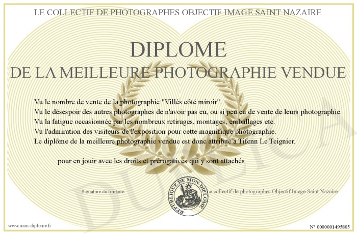Envoyez par email votre Diplôme de la meilleure photographie vendue personalisé