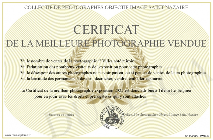 Envoyez par email votre Cerificat de la meilleure photographie vendue personalisé