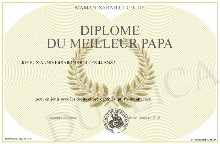 Envoyez par email votre Diplôme du meilleur papa personalisé