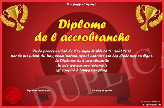 Envoyez par email votre Diplôme de l accrobranche personalisé