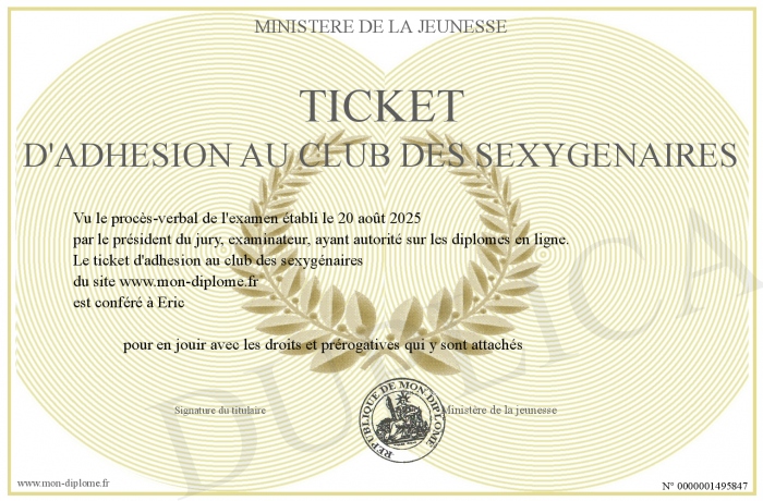 Envoyez par email votre ticket d'adhesion au club des sexygénaires personalisé