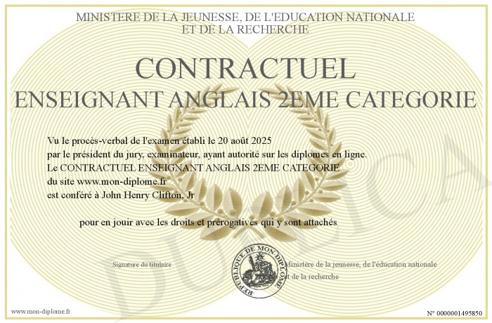 Envoyez par email votre CONTRACTUEL ENSEIGNANT ANGLAIS 2EME CATEGORIE personalisé