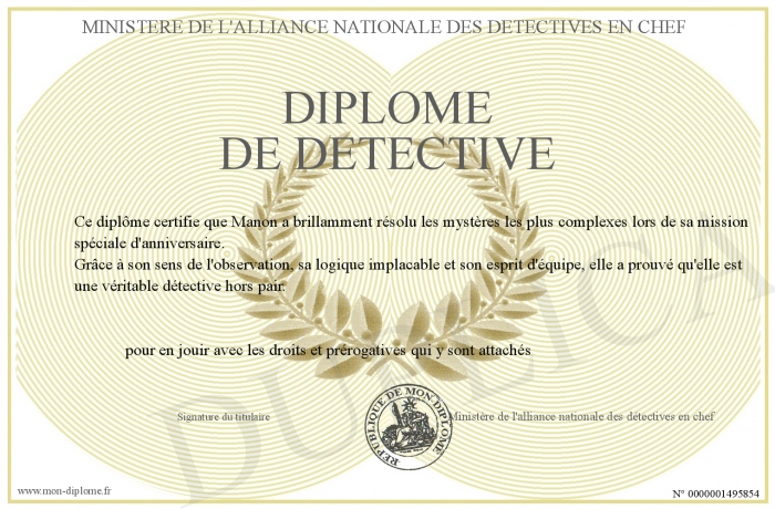Envoyez par email votre DIPLOME DE DETECTIVE personalisé