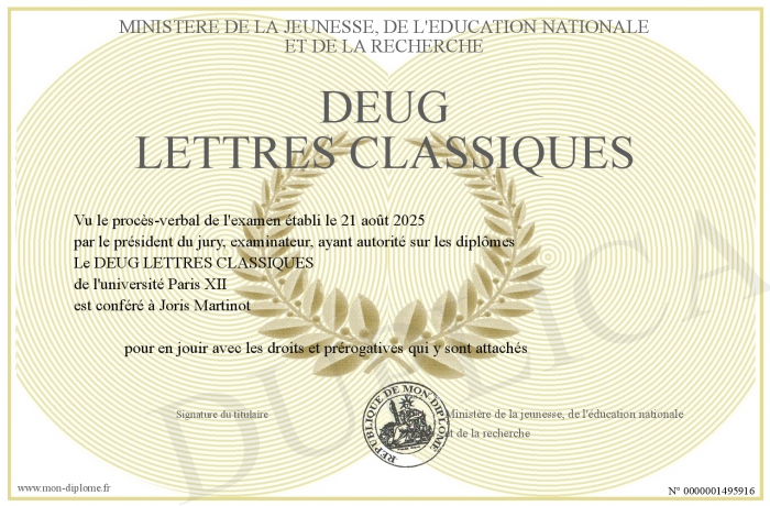 Envoyez par email votre DEUG LETTRES CLASSIQUES personalisé