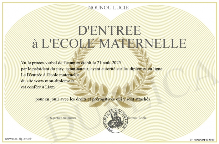 Envoyez par email votre D'entrée à l'école maternelle personalisé