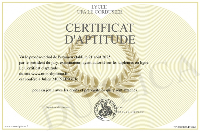 Envoyez par email votre Certificat d'aptitude personalisé