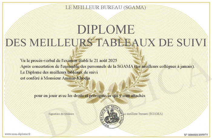 Envoyez par email votre Diplôme des meilleurs tableaux de suivi personalisé