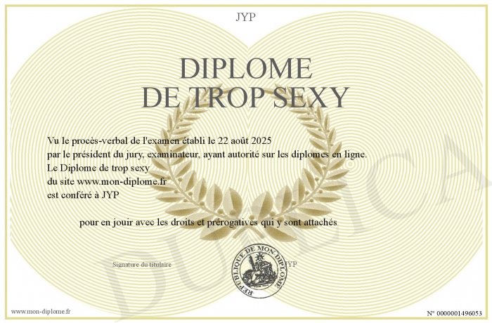 Envoyez par email votre Diplôme de trop sexy personalisé
