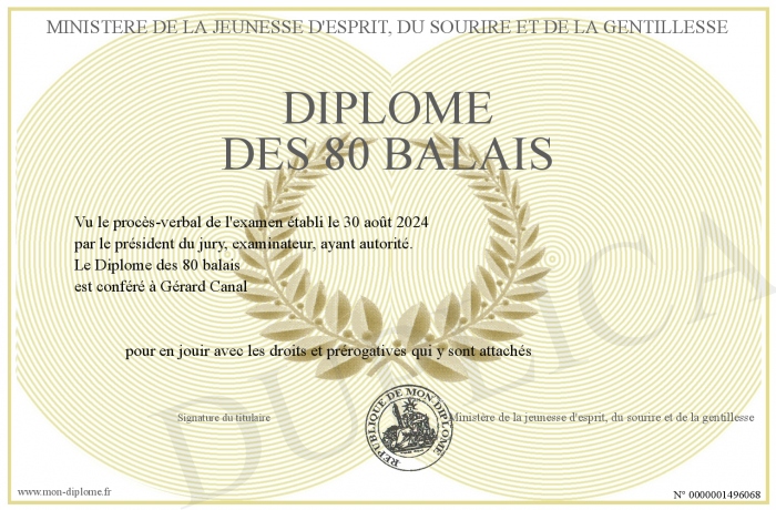 Envoyez par email votre Diplôme des 80 balais personalisé