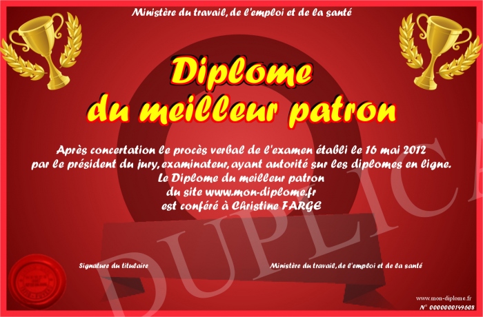 Envoyez par email votre Diplome du meilleur patron personalisé