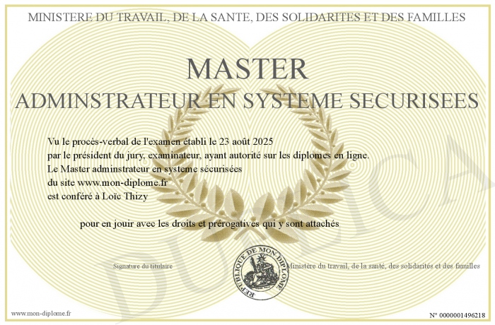 Envoyez par email votre Master adminstrateur en systeme sécurisées personalisé