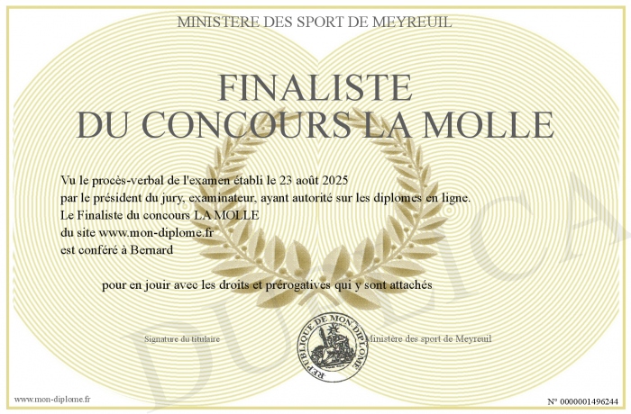 Envoyez par email votre Finaliste du concours LA MOLLE personalisé