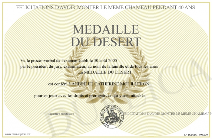 Envoyez par email votre MEDAILLE DU DESERT personalisé