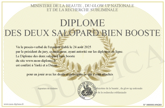 Envoyez par email votre Diplôme des deux salopard bien booste personalisé
