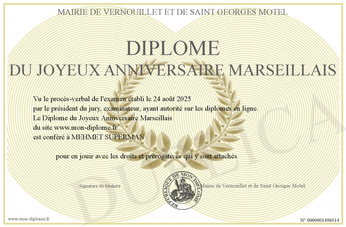 Envoyez par email votre Diplôme du Joyeux Anniversaire Marseillais personalisé