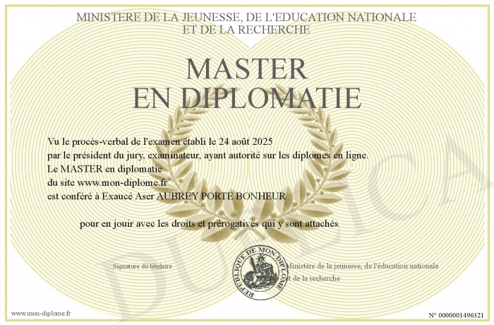 Envoyez par email votre MASTER en diplomatie personalisé