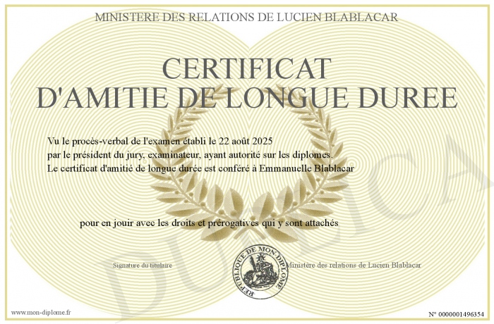 Envoyez par email votre certificat d'amitié de longue durée personalisé