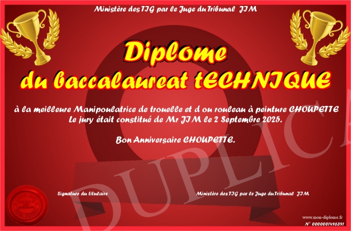 Envoyez par email votre Diplôme du baccalaureat tECHNIQUE personalisé