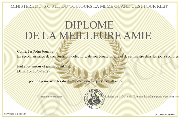 Envoyez par email votre diplôme de la Meilleure Amie personalisé
