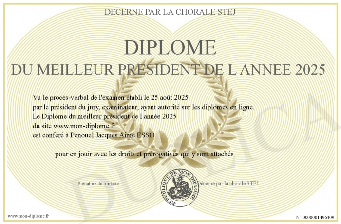 Envoyez par email votre Diplôme du meilleur président de l année 2025 personalisé