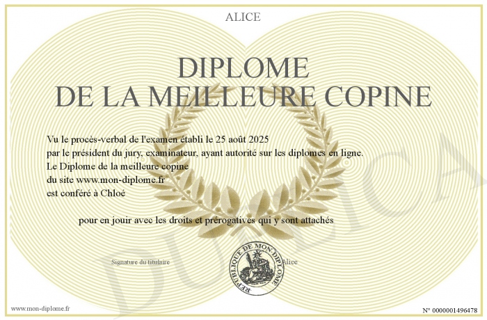 Envoyez par email votre Diplôme de la meilleure copine personalisé