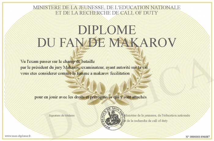 Envoyez par email votre Diplôme Du Fan De Makarov personalisé