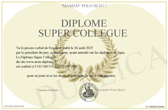 Envoyez par email votre Diplôme Super Collègue personalisé
