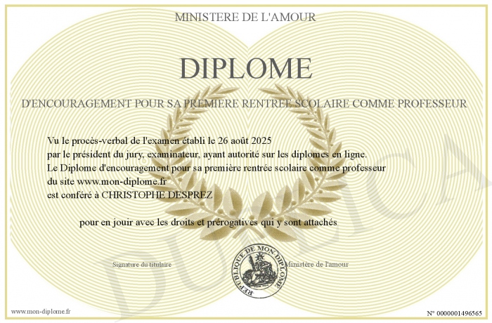 Envoyez par email votre Diplôme d'encouragement pour sa première rentrée scolaire comme professeur personalisé