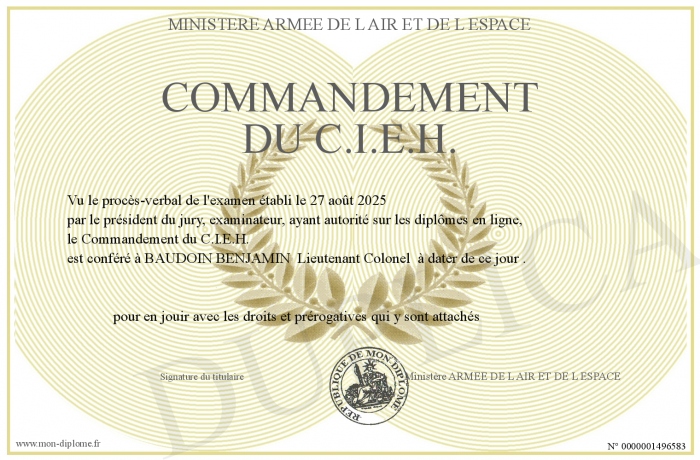 Envoyez par email votre Commandement du C.I.E.H. personalisé