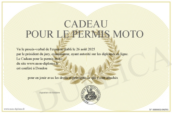 Envoyez par email votre Cadeau pour le permis moto personalisé